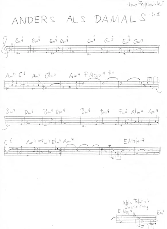 Die meisten von Feigenwinters Kompositionen lassen sich als einfache Lead Sheets notieren. Hier zu finden sind vor allem die Anfangs-Themen der Stücke. Sollten die Noten nicht ganz mit der Musik auf CD oder Konzerten übereinstimmen, liegt das in der Natur einer Jazzband: auch nachdem ein Song aufgeschrieben ist, verändert er sich weiterhin durchs Spielen, und ist noch, bevor er auf Platte herausgekommen ist, nicht mehr der selbe wie auf dem Lead Sheet.