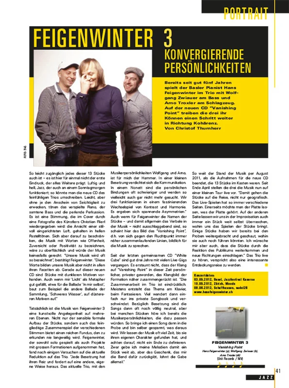 Feigenwinter schafft den Spagat, anspruchsvbolle Instrumentaljazzsounds zu kreieren, welche aber auch das Zeug zu einem Ohrwurm haben.
