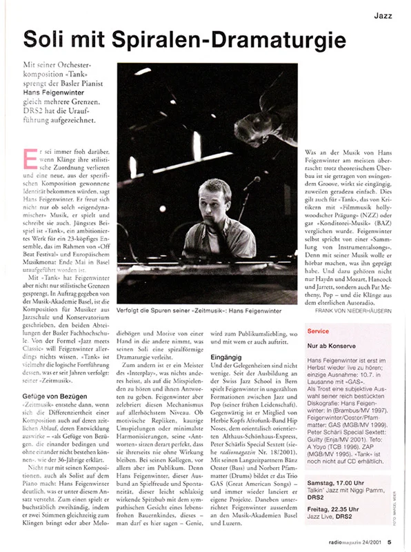 Glasklar, hörbar und mit hinreissendem Instrumentalgroove präsentiert sich die Musik von Hans Feigenwinter.
